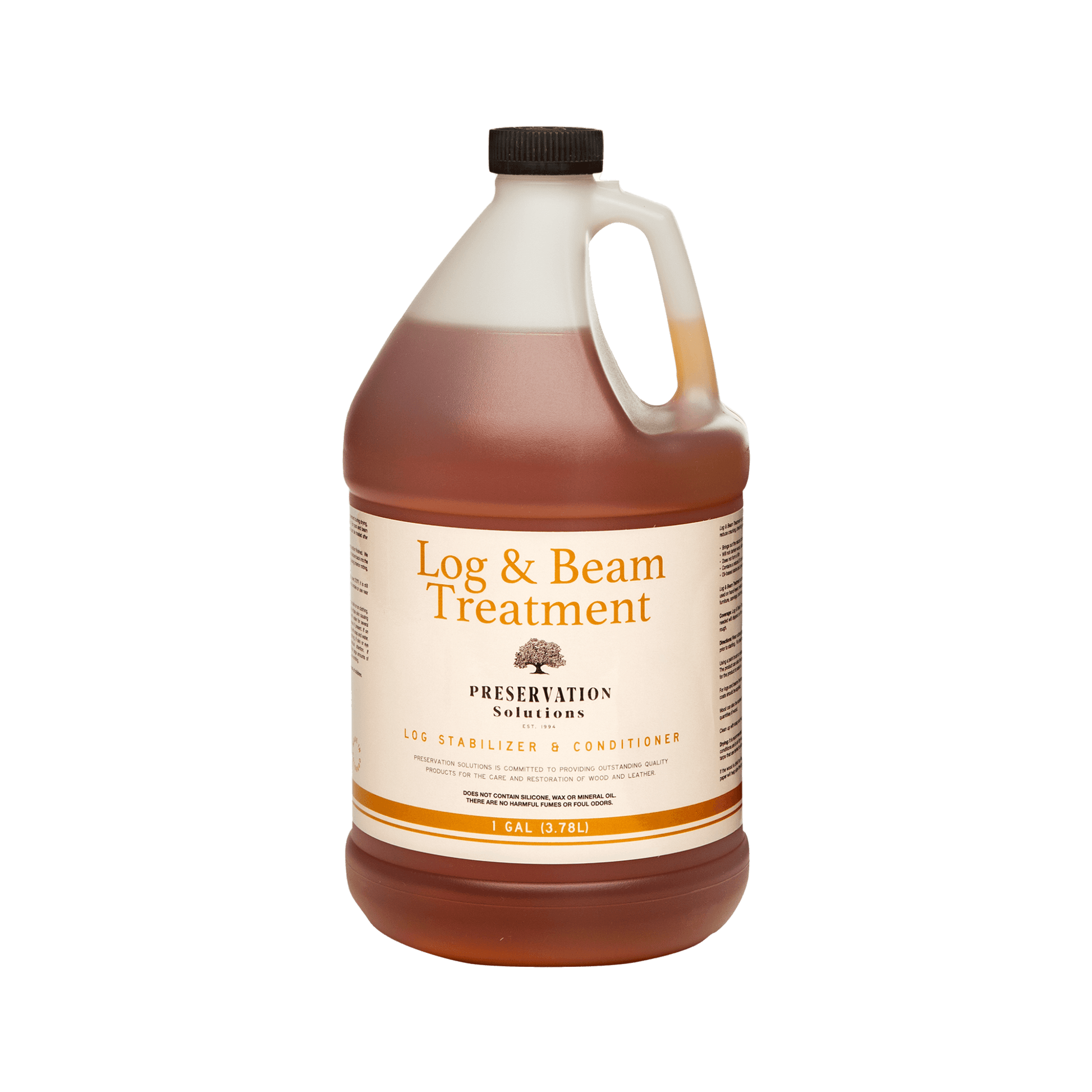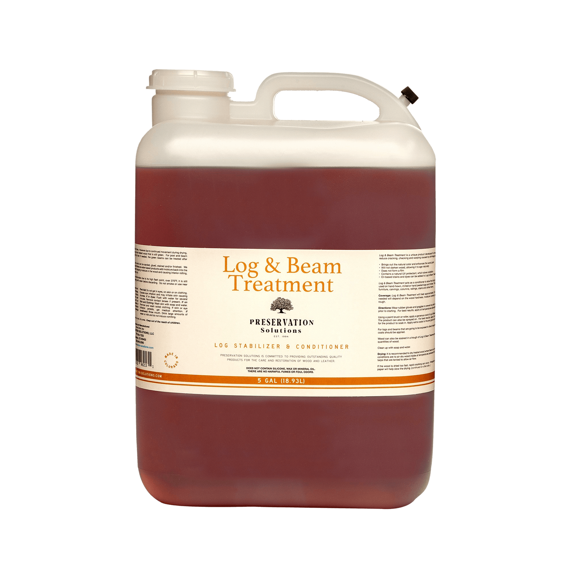 Since Log & Beam Treatment does not tie up moisture in the wood, it eliminates the chances of rotting from within. It can be used on hand-hewn, milled and hand peeled logs and timber. Wood can be treated and dried inside new construction sites. Great for use on accent logs and beams, archways, columns, railings, stairs, etc.